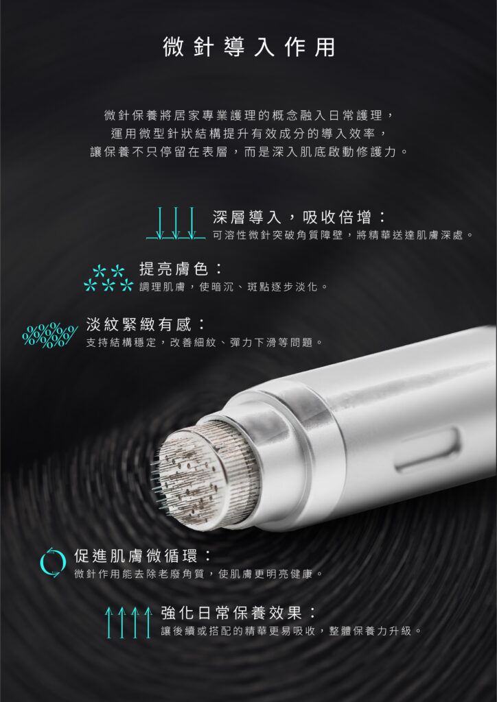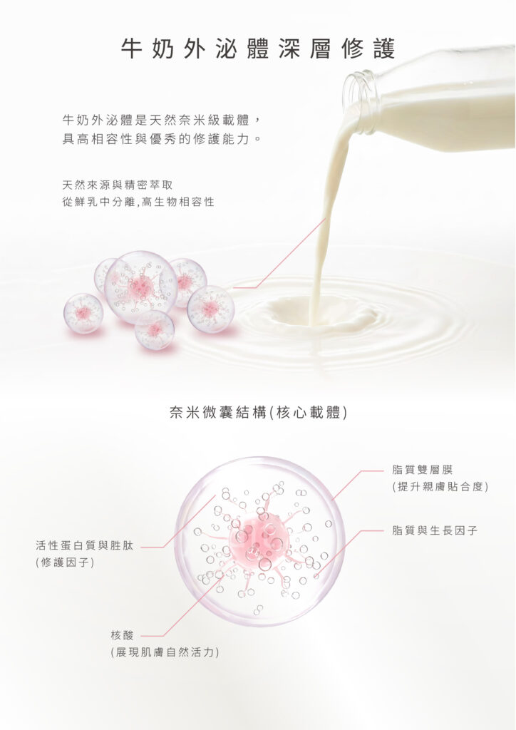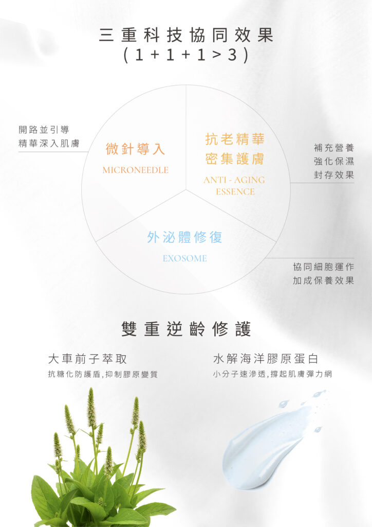 微針序列含牛奶外泌體與水解海洋膠原,透過微針滲透讓活性因子直達肌底,