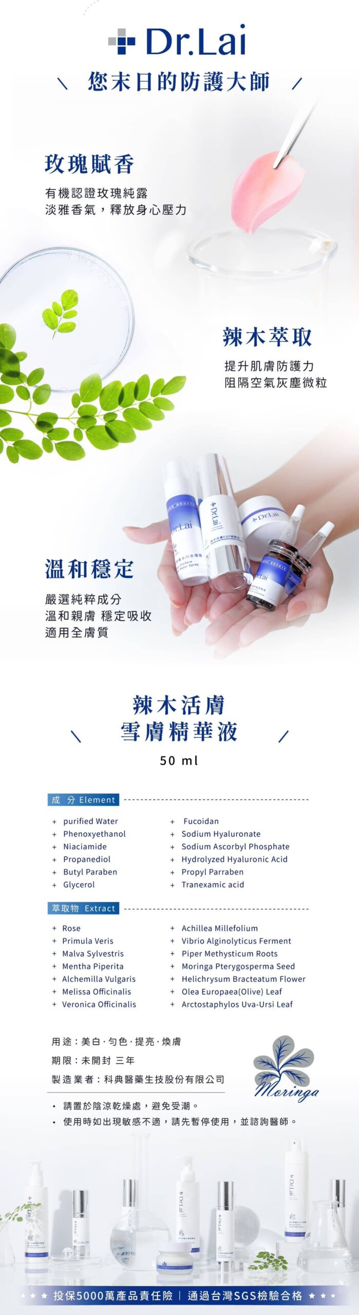 首頁 全部商品 Dr.Lai | 辣木活膚雪膚精華液 Dr.Lai | 辣木活膚雪膚精華液NT$3,280 原始價格:NT$3,280。NT$2,980目前價格:NT$2,980。 Dr.Lai 辣木活膚雪膚精華液 50ml -溫和美白煥膚。 -添加辣木等舒緩成分。 -全膚質適用,孕婦嬰兒也安心使用。 -無添加人工色素、香精、激素、重金屬。 購買並賺取 2,980 紅利點數! Dr.Lai | 辣木活膚雪膚精華液 數量 加入購物車 貨號: 165117 分類: 全部商品 描述 額外資訊 選項 2瓶 _ 贈「逆齡之泌 – 微針精華面膜,3片」, 3瓶 _ 贈 「慕光三效美白精萃,1瓶」, 4瓶 _ 贈 「慕光三效美白精萃,1瓶」+「逆齡之泌 – 微針精華面膜,3片」, 1瓶 相關商品 BEL|Miss Who 密私護 NT$2,580 購買並賺取 2,580 紅利點數!加入購物車 CAROLIN | 凱洛琳逆齡之泌 NT$590 原始價格:NT$590。NT$399目前價格:NT$399。 購買並賺取 399 紅利點數!加入購物車 BEL | 慕光三效美白精萃 NT$1,980 原始價格:NT$1,980。NT$1,680目前價格:NT$1,680。 購買並賺取 1,680 紅利點數!加入購物車